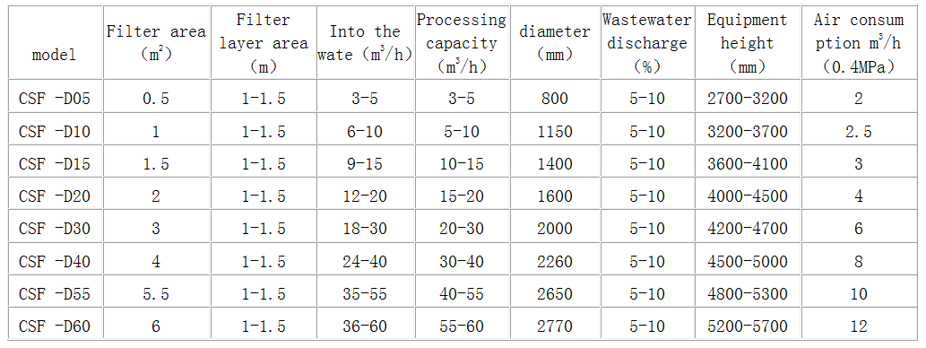 CSF-D series of continuous anti-washed sand filter specifications